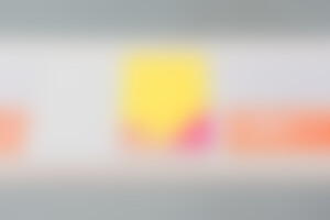 Sur celui-ci est disposée une sélection de petits formats issus des “A5, A6 - Les Paygraphies”. Leurs teintes fluorescentes créent un contraste saisissant avec l’espace d’exposition aux tonalités froides.